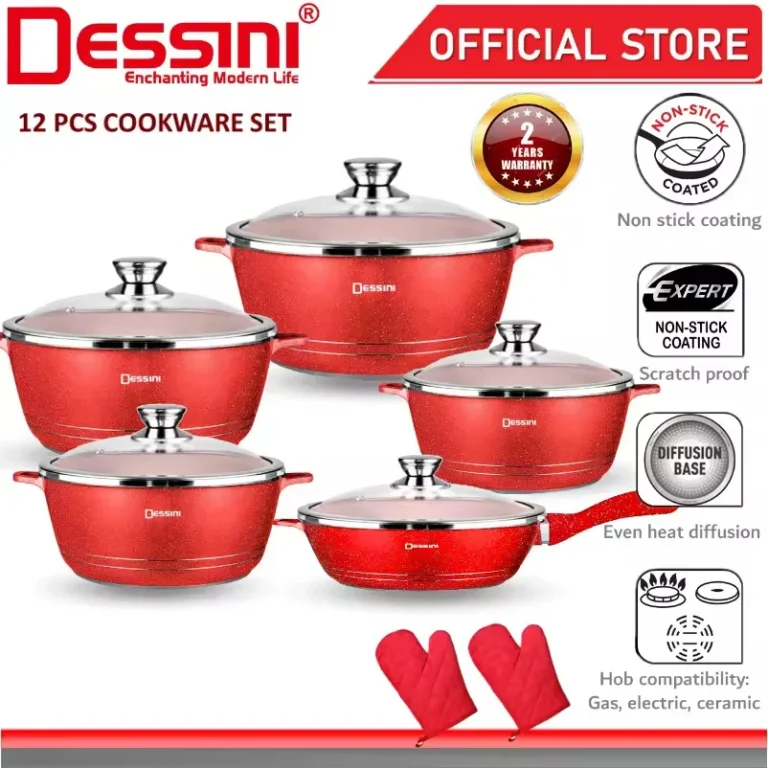 DESSINI ITALY Granite Aluminium Non Stick Casserole Pot Bowl Deep Fry Pan Cookware Tool (12 Pcs)